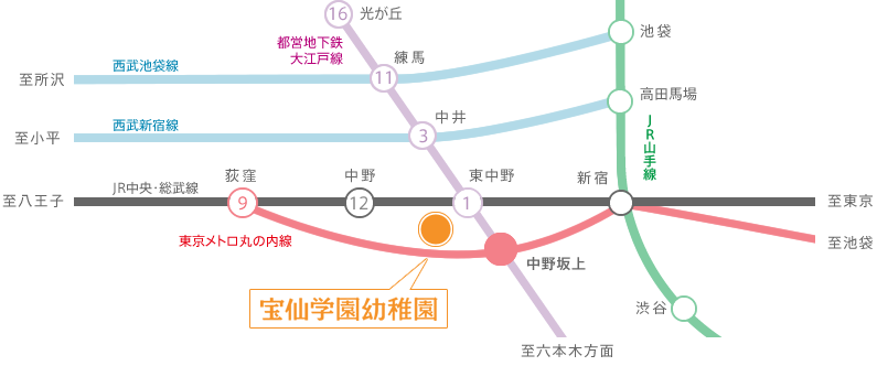 「新宿」駅西口発 「宝仙寺前」下車 徒歩5分