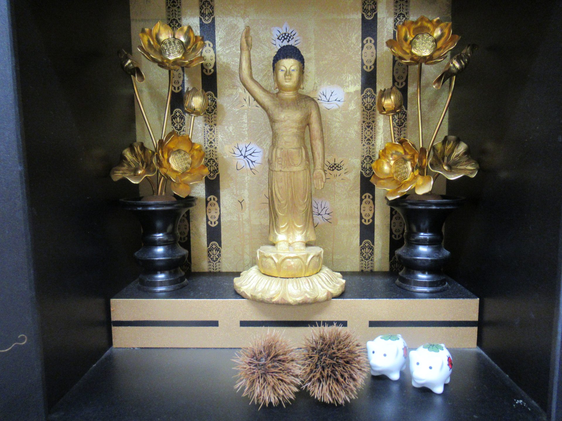「毬栗(いがぐり)」がふたつお釈迦様にお供えされていました。