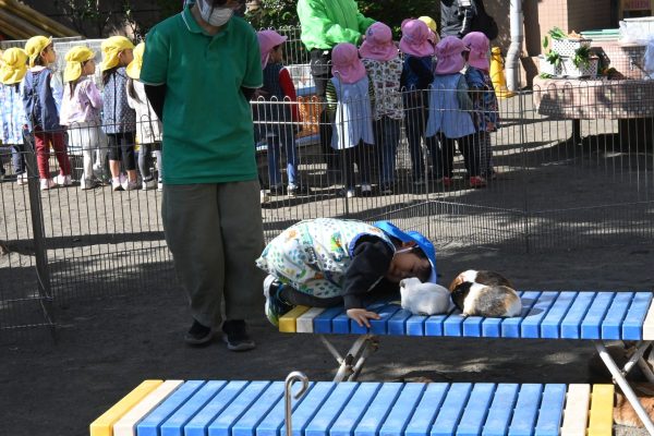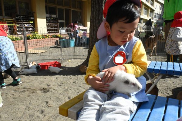 餌をあげたり、優しく撫でたり、抱っこしたりなど、子どもたちは動物たちとたくさん触れ合い、興味をもって観察する姿が見られました。