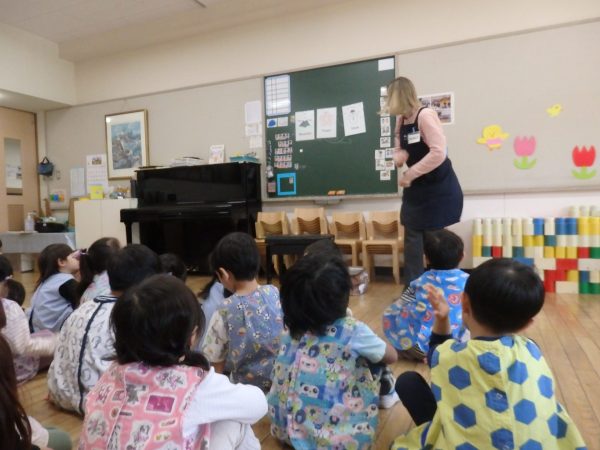 年中組にとって、今年度最初の英語のレッスンが始まりました。