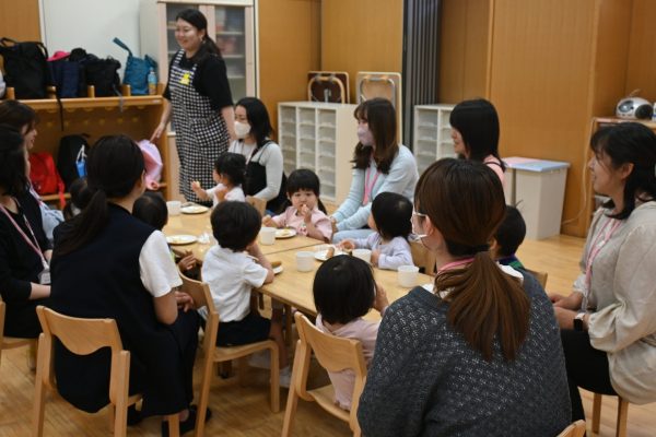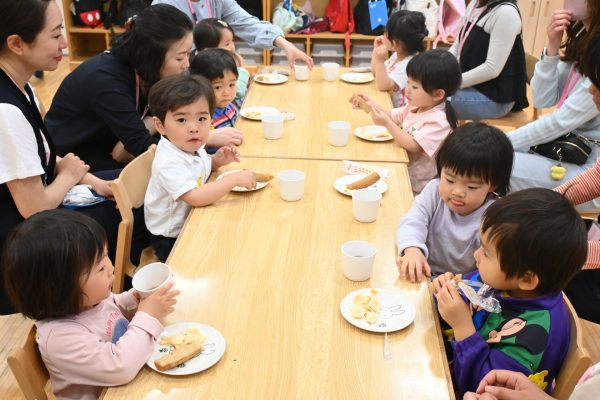 たくさん遊んだ後は、皆でおやつを食べました。おいしかったね。